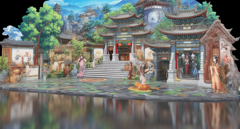古城墙文献楼的“飞檐载风月”光影秀堪称典范。通过3D Mapping技术,1800万面体模型精准还原斗拱结构,光影中的“风花雪月”木雕与洱海生态数据实时联动。游客可AR体验“虚拟奉茶”,完成三道茶礼仪后触发“宾主共饮”光影动画,配《白族民俗志》解析。更令人惊叹的是,天龙八部影视城推出《珍珑迷局》剧本游,游客通过3D打印的“虚拟扎结”道具解锁剧情,实现“吃游购娱”一站式沉浸体验。
